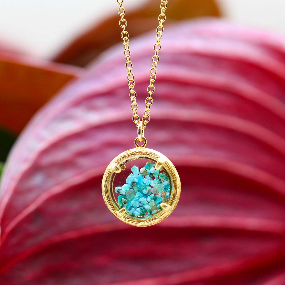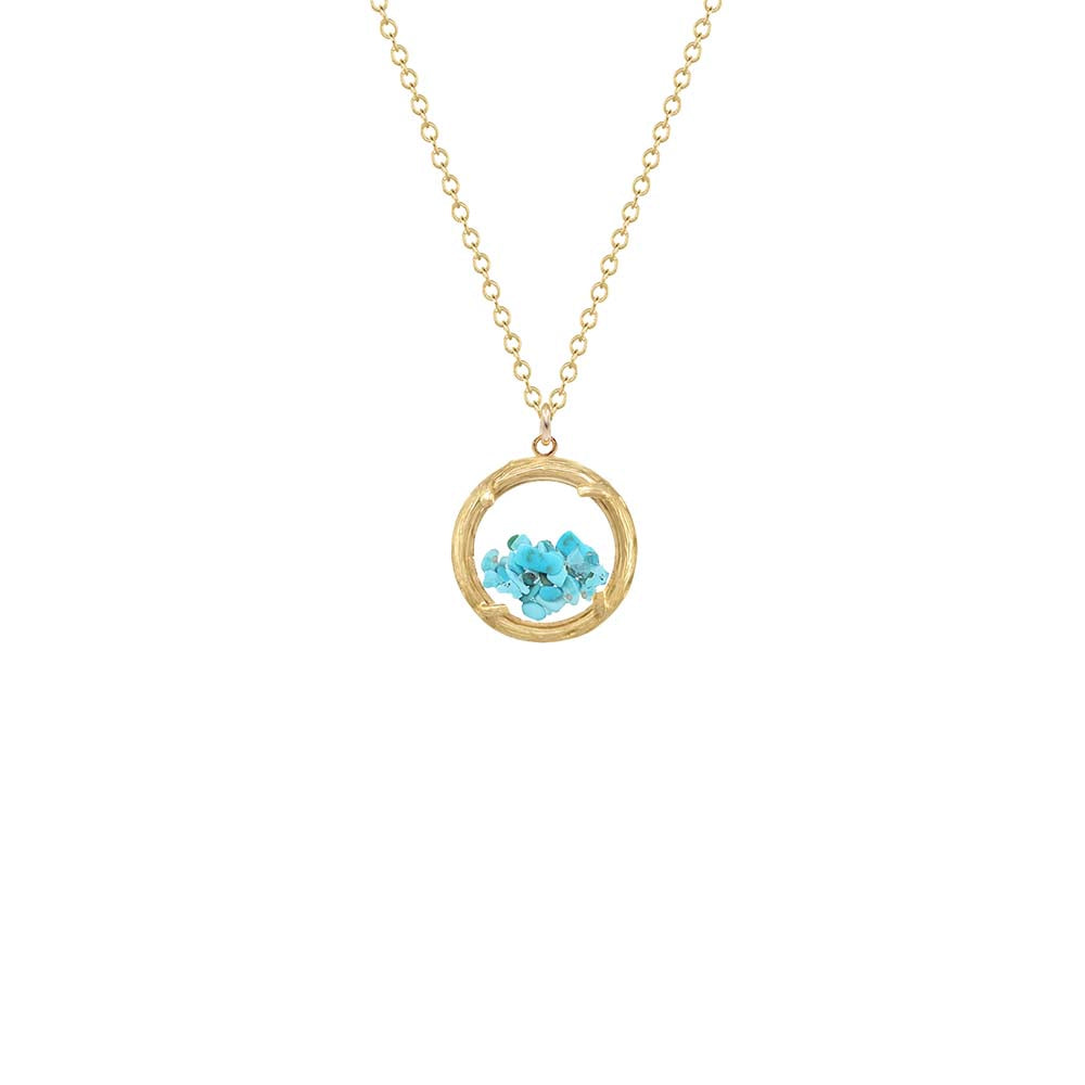 Mini Birthstone Shaker Necklace - Gold Vermeil - December / Turquoise
