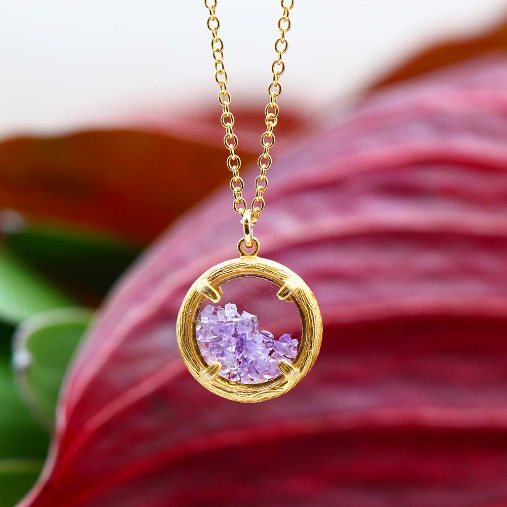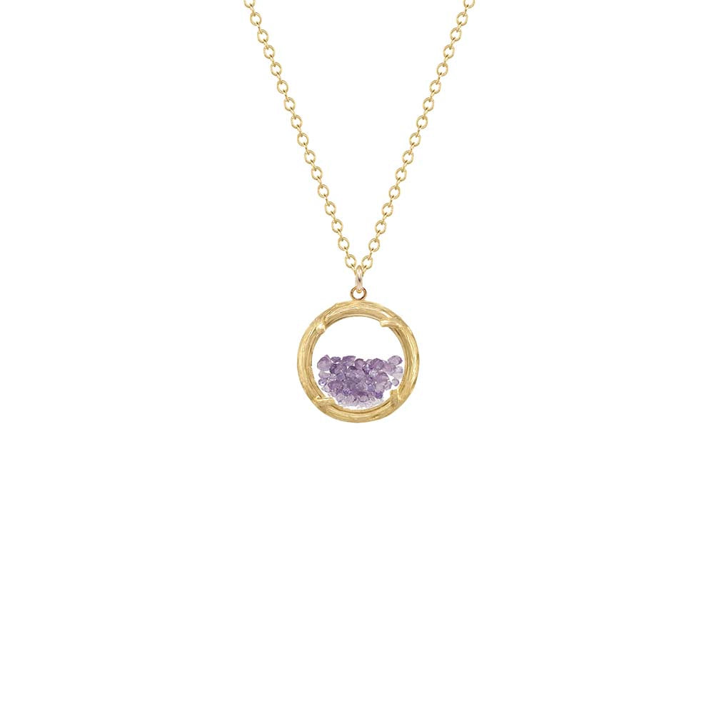 Mini Birthstone Shaker Necklace - Gold Vermeil - February / Amethyst