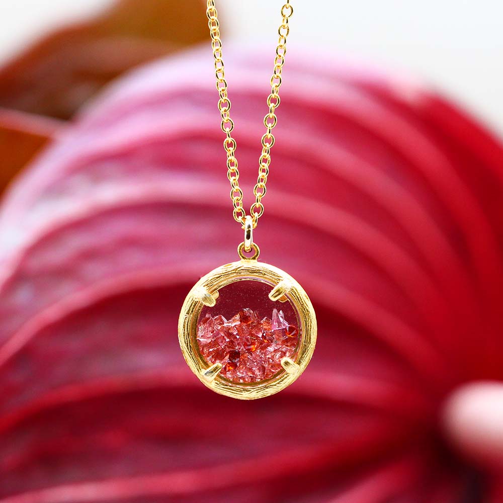 Alive with vibrant color and dynamic movement, the Mini Shaker Birthstone Necklace elevates an everyday outfit to an eye-catching ensemble. The two-sided glass chamber is framed by an organically styled, softly textured branch and filled with your choice of semi-precious stone. Choose your birthstone, your favorite color … any stone that resonates with you!