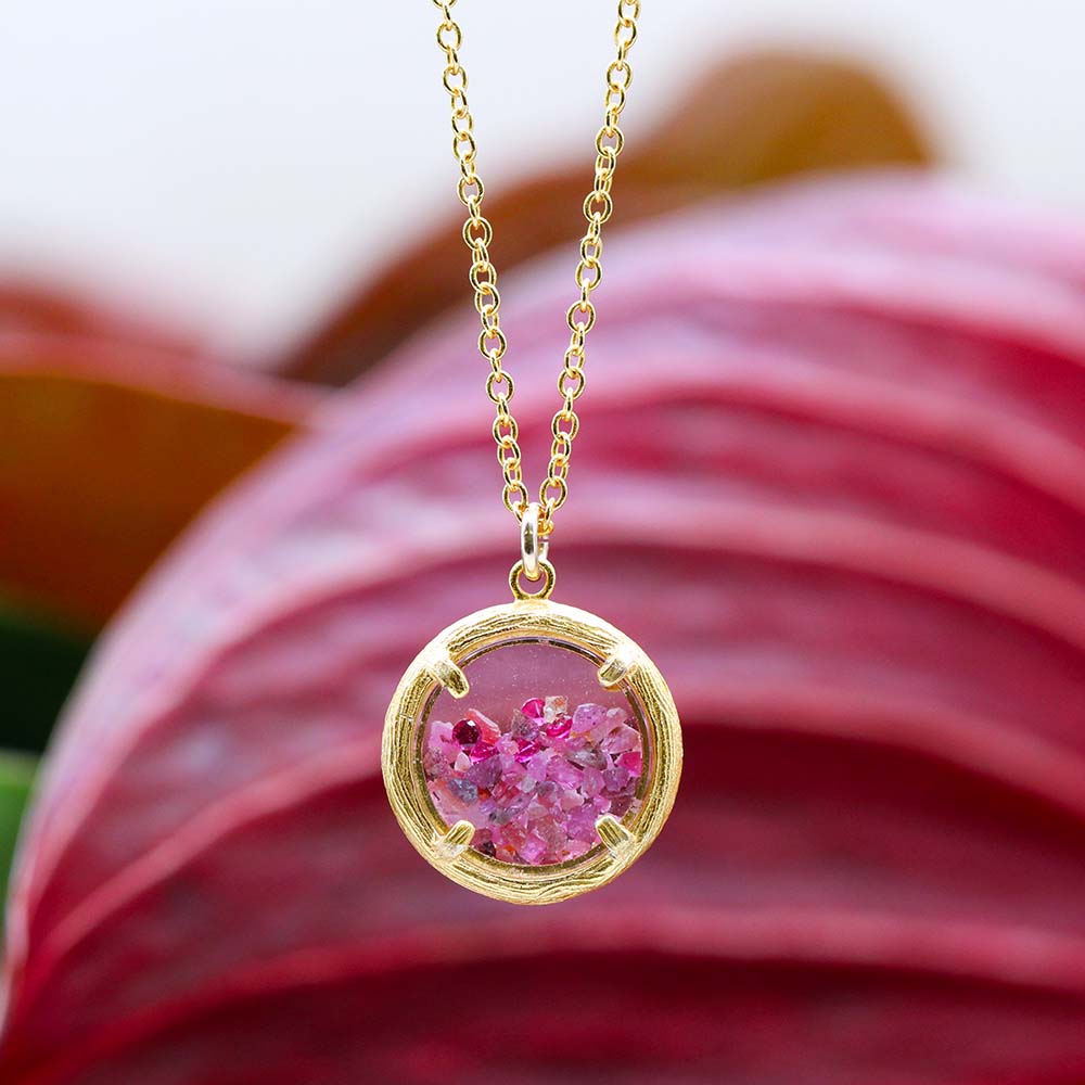 Mini Birthstone Shaker Necklace - Gold Vermeil - July / Ruby