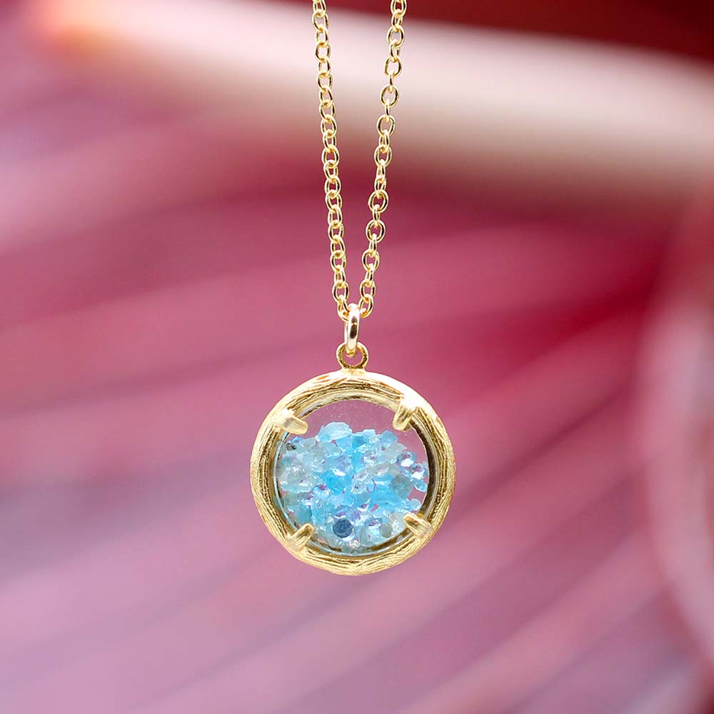Mini Birthstone Shaker Necklace - Gold Vermeil - March / Aquamarine