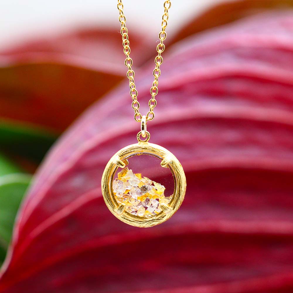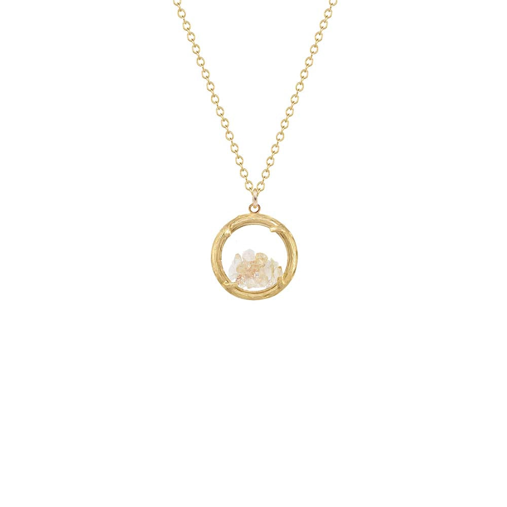 Alive with vibrant color and dynamic movement, the Mini Shaker Birthstone Necklace elevates an everyday outfit to an eye-catching ensemble. The two-sided glass chamber is framed by an organically styled, softly textured branch and filled with your choice of semi-precious stone. Choose your birthstone, your favorite color … any stone that resonates with you!
