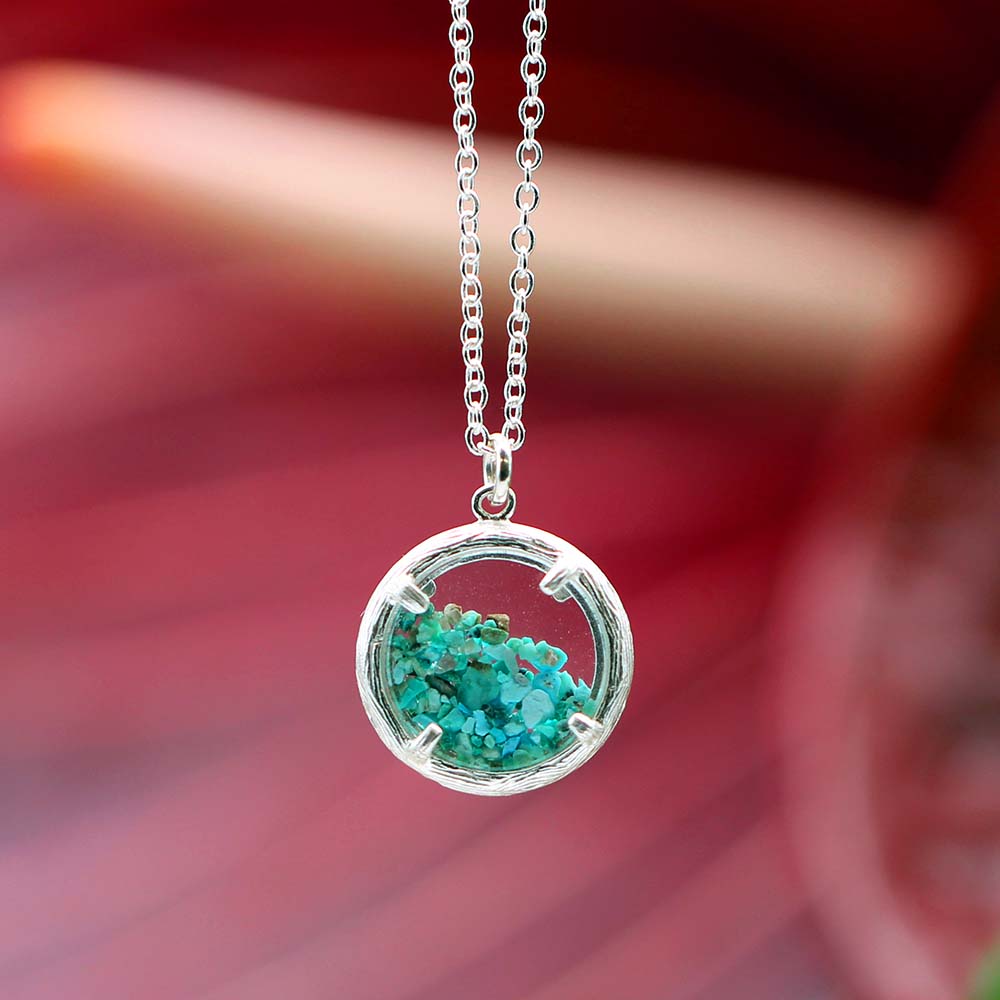 Mini Birthstone Shaker Necklace - Sterling Silver - December / Turquoise