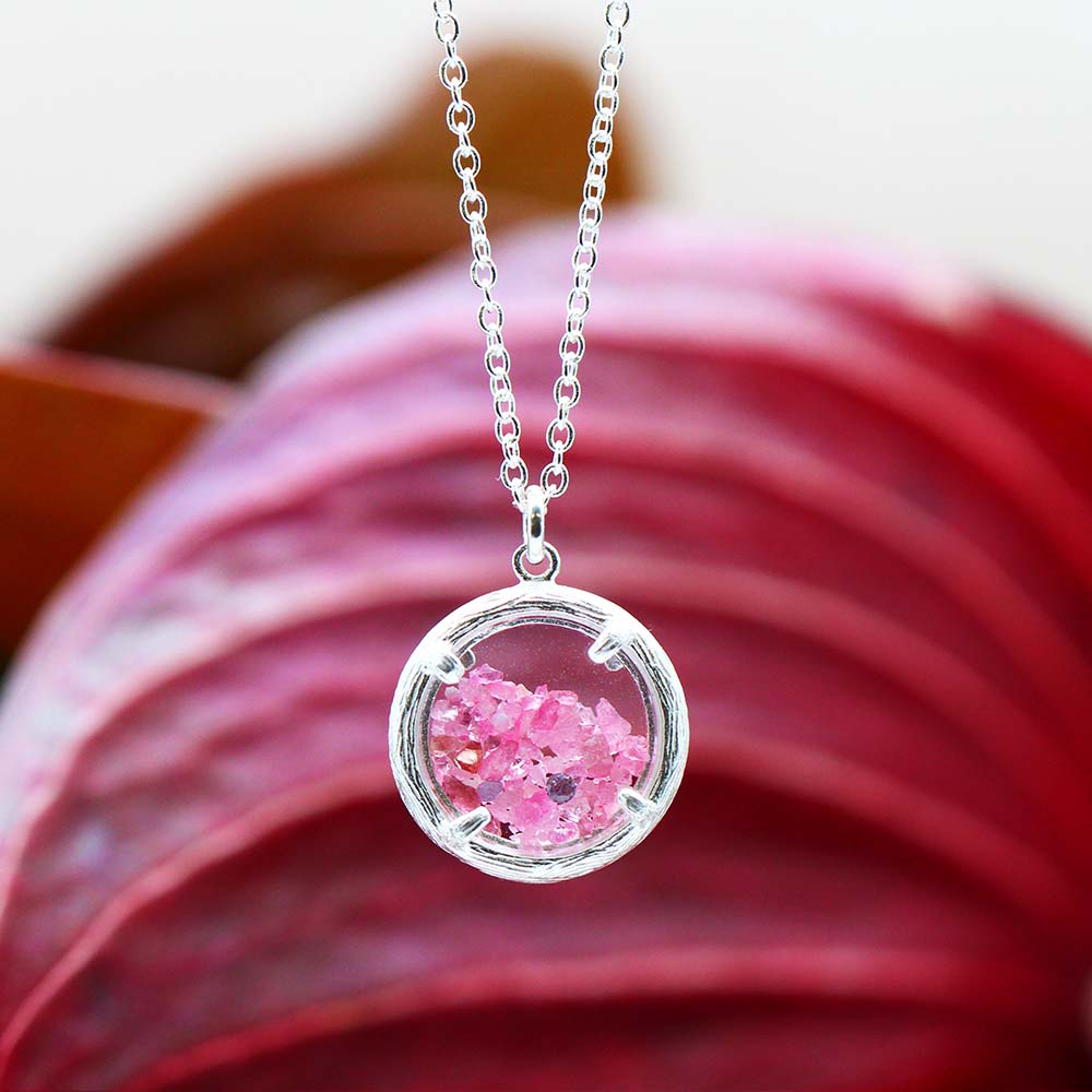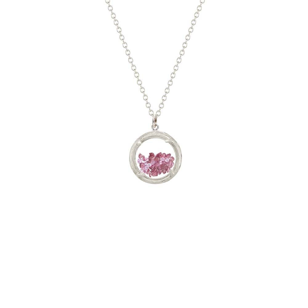 Mini Birthstone Shaker Necklace - Sterling Silver - October / Pink Tourmaline