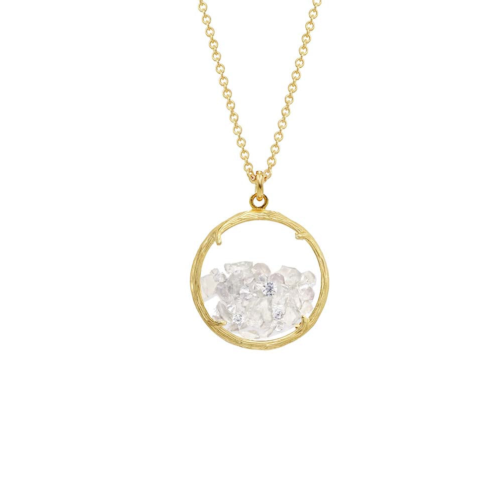 Small Birthstone Shaker Necklace - Gold Vermeil - April / White Topaz