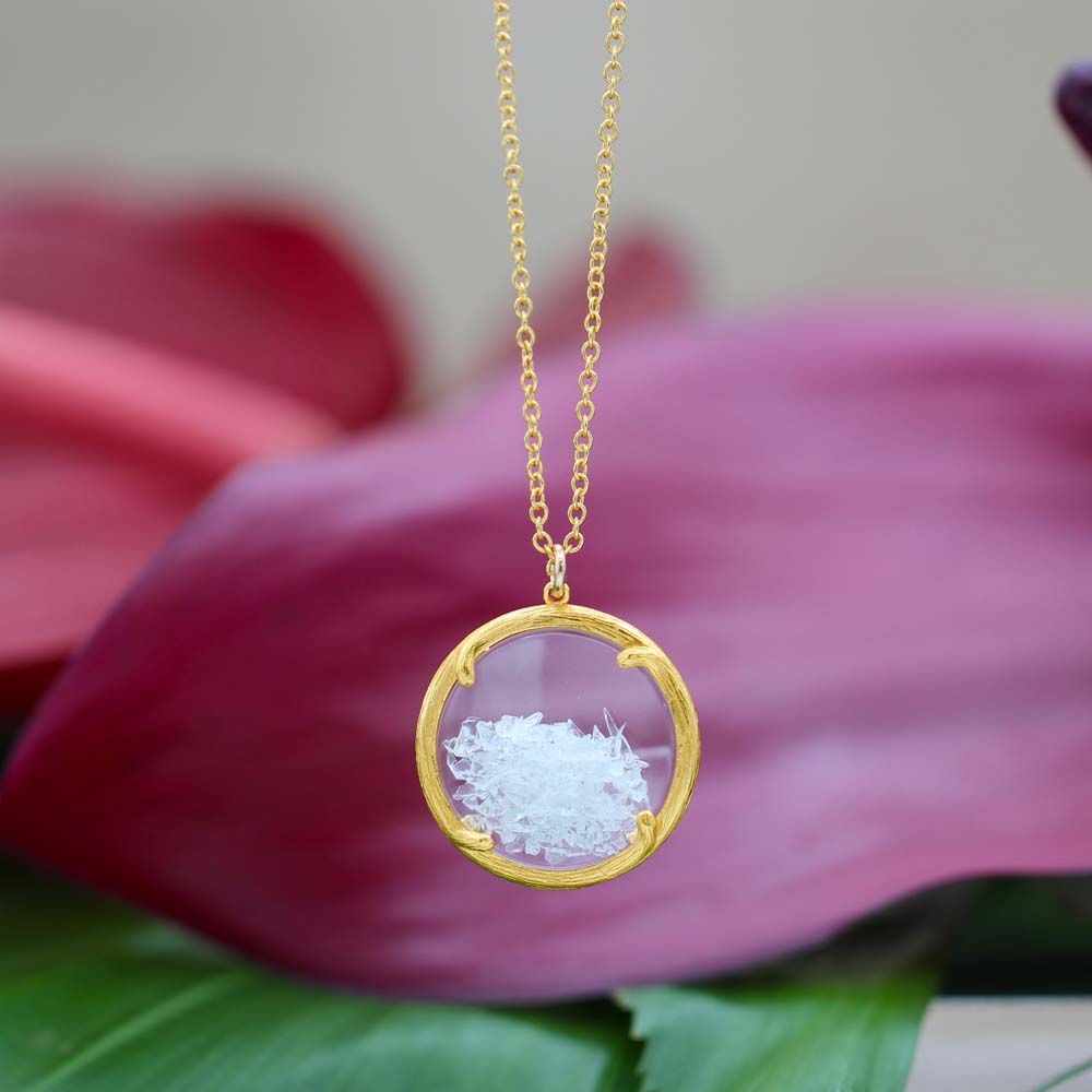 Alive with vibrant color and dynamic movement, the Mini Shaker Birthstone Necklace elevates an everyday outfit to an eye-catching ensemble. The two-sided glass chamber is framed by an organically styled, softly textured branch and filled with your choice of semi-precious stone. Choose your birthstone, your favorite color … any stone that resonates with you!