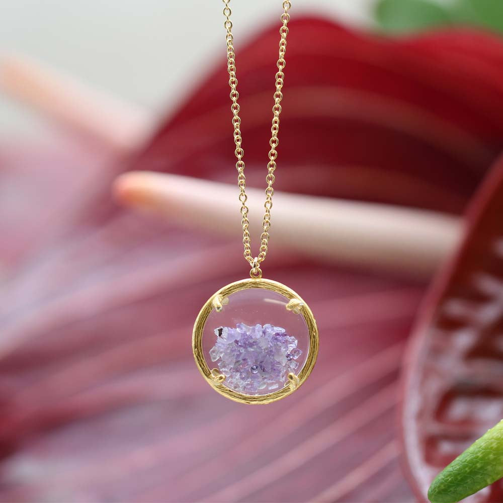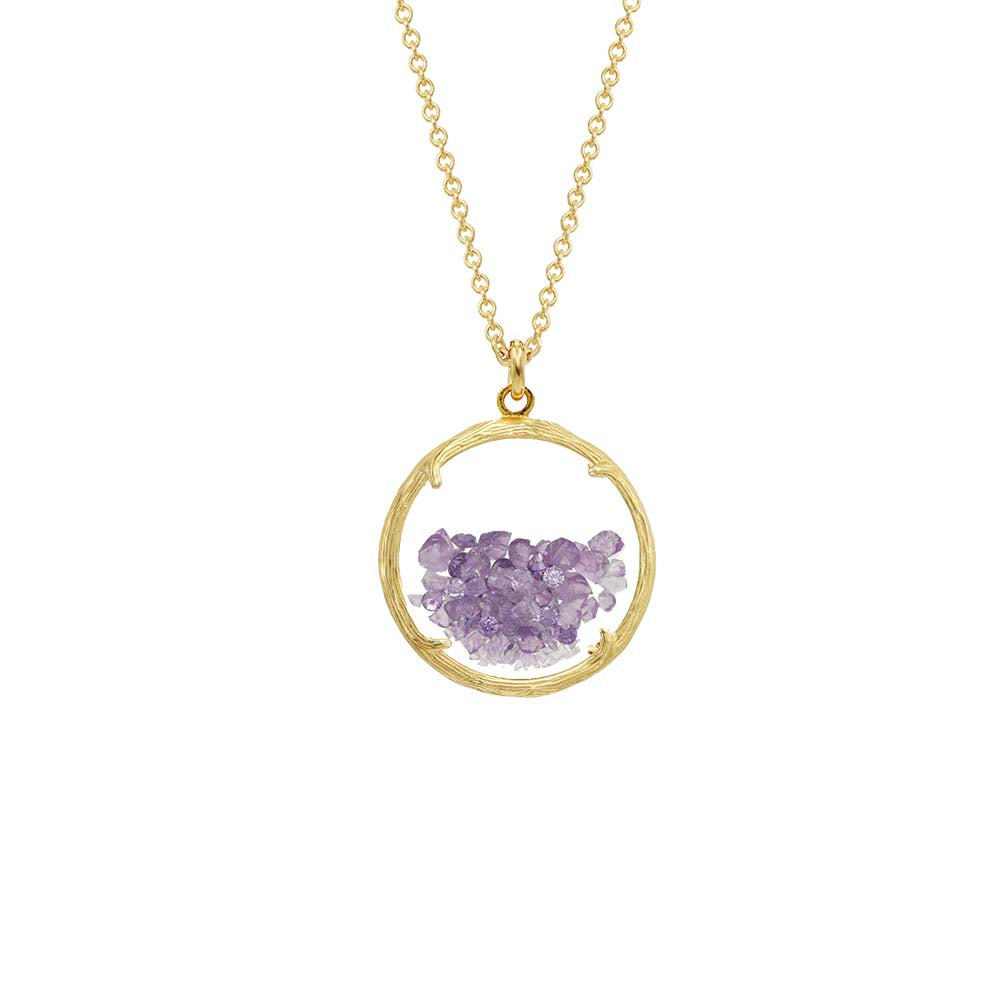 Small Birthstone Shaker Necklace - Gold Vermeil - February / Amethyst