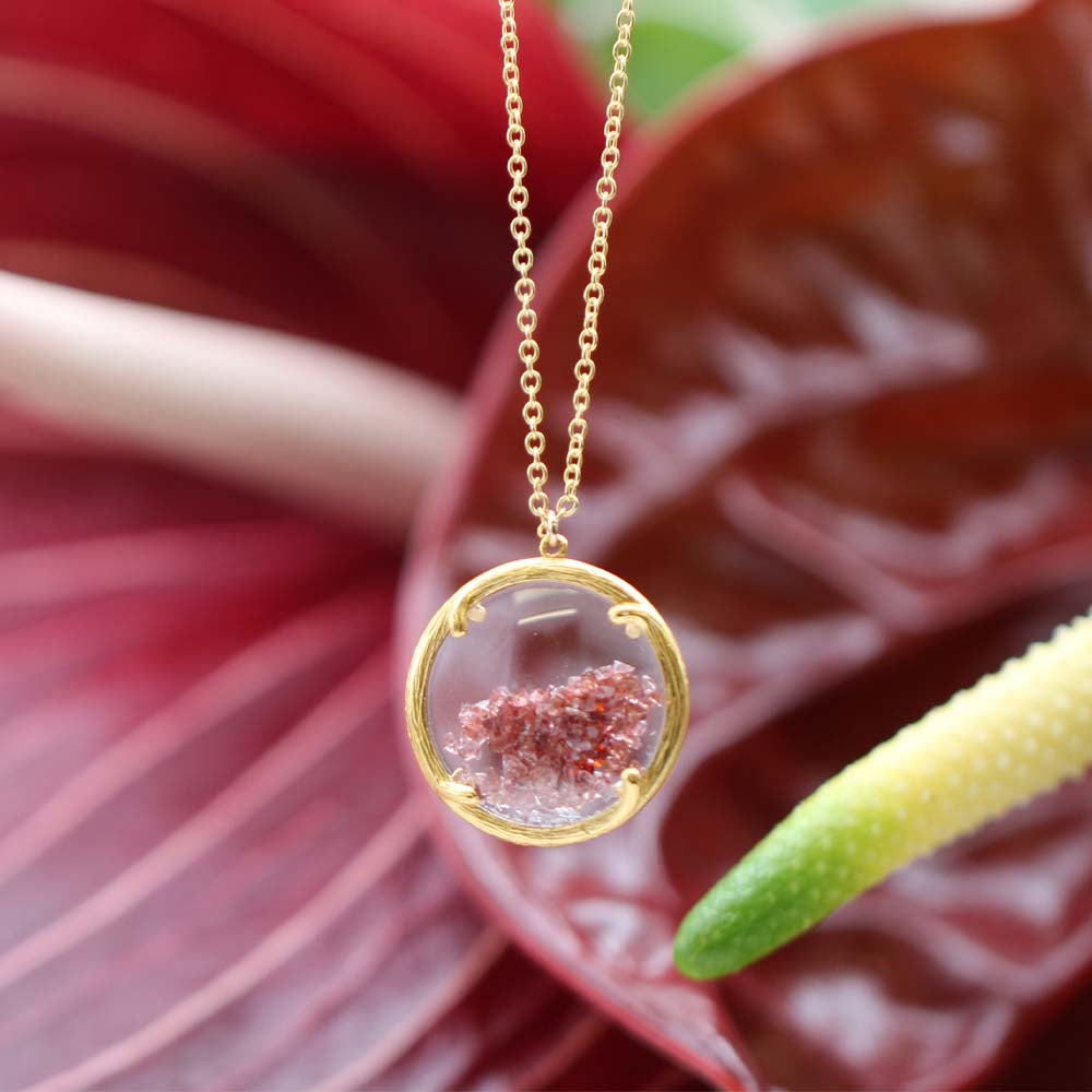 Alive with vibrant color and dynamic movement, the Mini Shaker Birthstone Necklace elevates an everyday outfit to an eye-catching ensemble. The two-sided glass chamber is framed by an organically styled, softly textured branch and filled with your choice of semi-precious stone. Choose your birthstone, your favorite color … any stone that resonates with you!