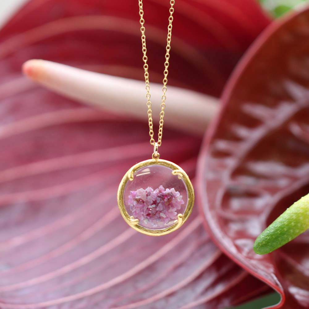 Alive with vibrant color and dynamic movement, the Mini Shaker Birthstone Necklace elevates an everyday outfit to an eye-catching ensemble. The two-sided glass chamber is framed by an organically styled, softly textured branch and filled with your choice of semi-precious stone. Choose your birthstone, your favorite color … any stone that resonates with you!