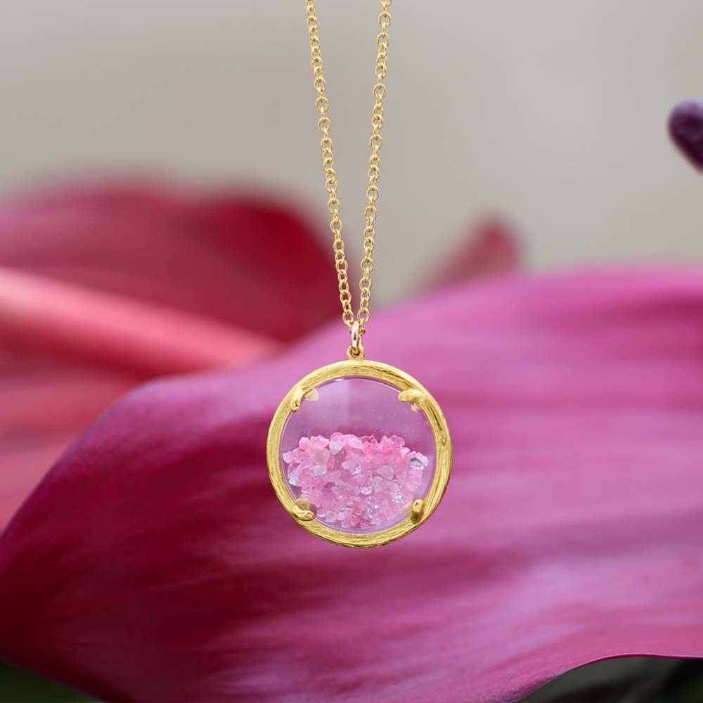 Small Birthstone Shaker Necklace - Gold Vermeil - October / Pink Tourmaline