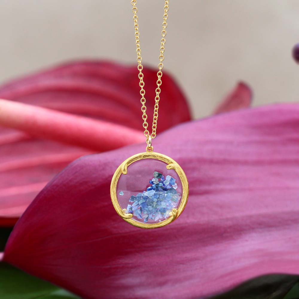 Alive with vibrant color and dynamic movement, the Mini Shaker Birthstone Necklace elevates an everyday outfit to an eye-catching ensemble. The two-sided glass chamber is framed by an organically styled, softly textured branch and filled with your choice of semi-precious stone. Choose your birthstone, your favorite color … any stone that resonates with you!