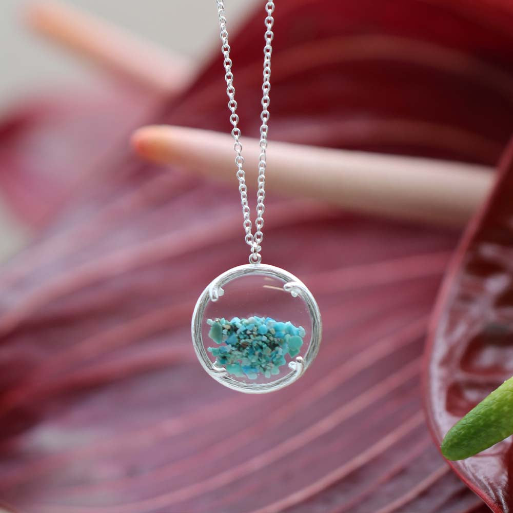 Small Birthstone Shaker Necklace - Sterling Silver - December / Turquoise