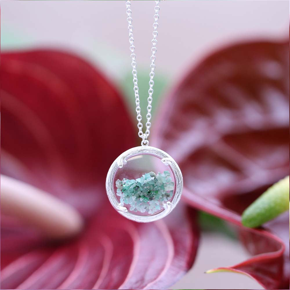 Small Birthstone Shaker Necklace - Sterling Silver - May / Emerald